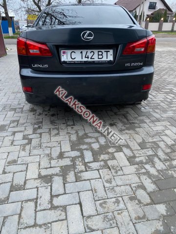 Продам Lexus IS220d, в хорошем состоянии, экономичный 2.2 дизель 177 л.с 2007 год, Свежепригнаное Авто Пригнано осенью 2025 года Регистрация ПМР. Задний привод, коробка: механика 6-ступка. Расход 6 ~7л/100 км По машине проблем нет, свежее ТО, новое масло фильтра и все житкости,новая резина новый техосмотр и страховка кузов без коррозии, велюровый живой салон. Ходовая без посторонних звуков. Форсунки в отличном состоянии а также удалена и прошита вся экология DPF off, EGR off, 5-ая форсунка. Турбина работает штатно, сел и поехал. Комплектация мультируль, круиз, бесключевой доступ, запуск кнопкой - функция start/stop, двухзонный климат, электроприводы и подогрев боковых зеркал, полный электропакет, парктроники, электрорегулировка фар и система Webasto. Машина переобута в свежий зимний комплект,Возможен торг при осмотре/автокредит,возможен обмен 077847447 077725928 Отвечу на любые вопросы, звоните, пишите Viber, Telegram, watthap