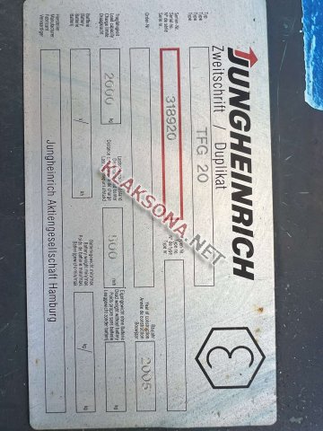 Погрузчик Вилочный JUNGHEINRICH TFG-20. 2005 года выпуска грузоподъемность 2000кг мотор 1.8 (Мицубиси) бензин/пропан. 9454 мото часов. Цена 8000€ 077787025